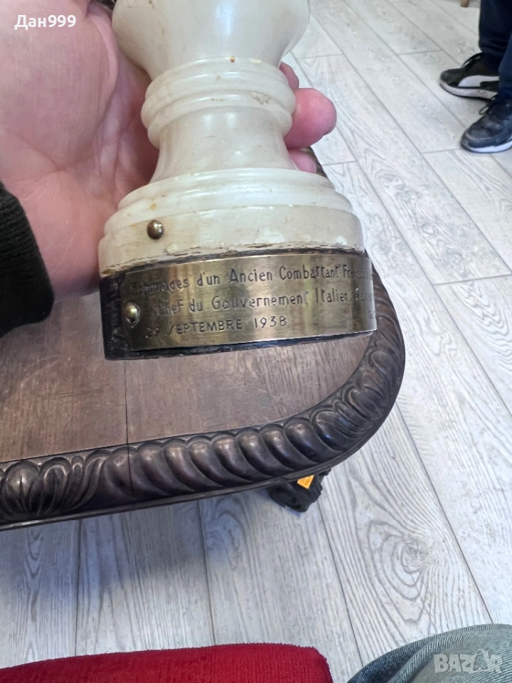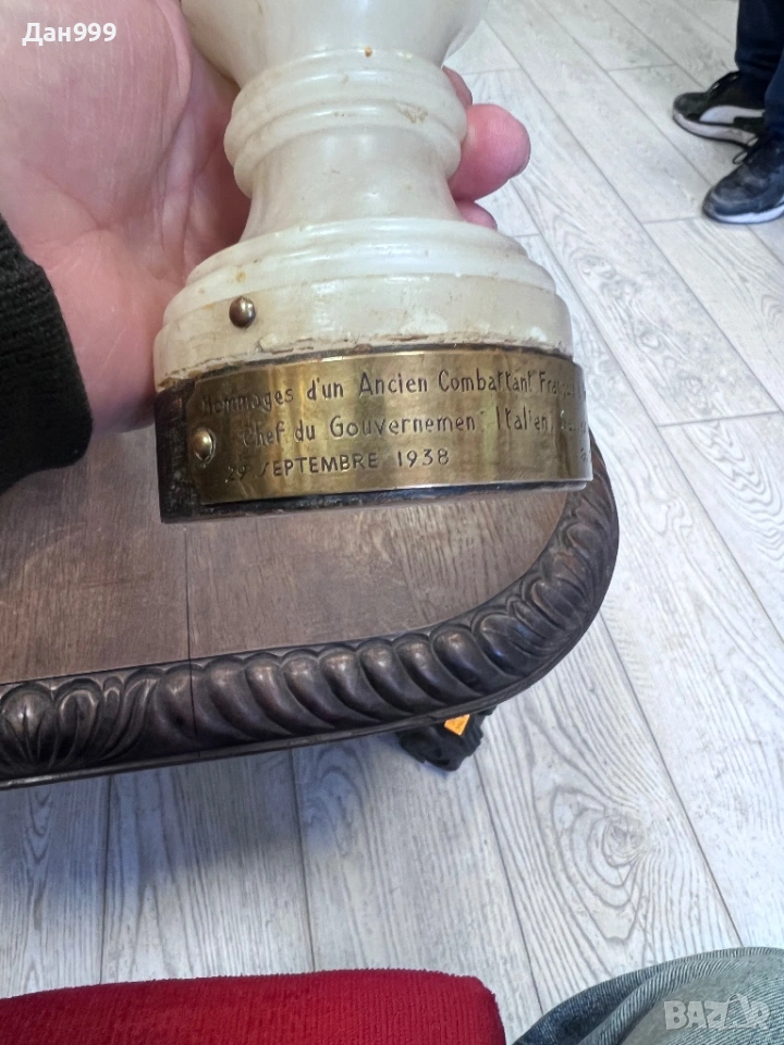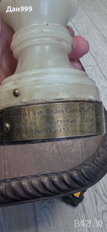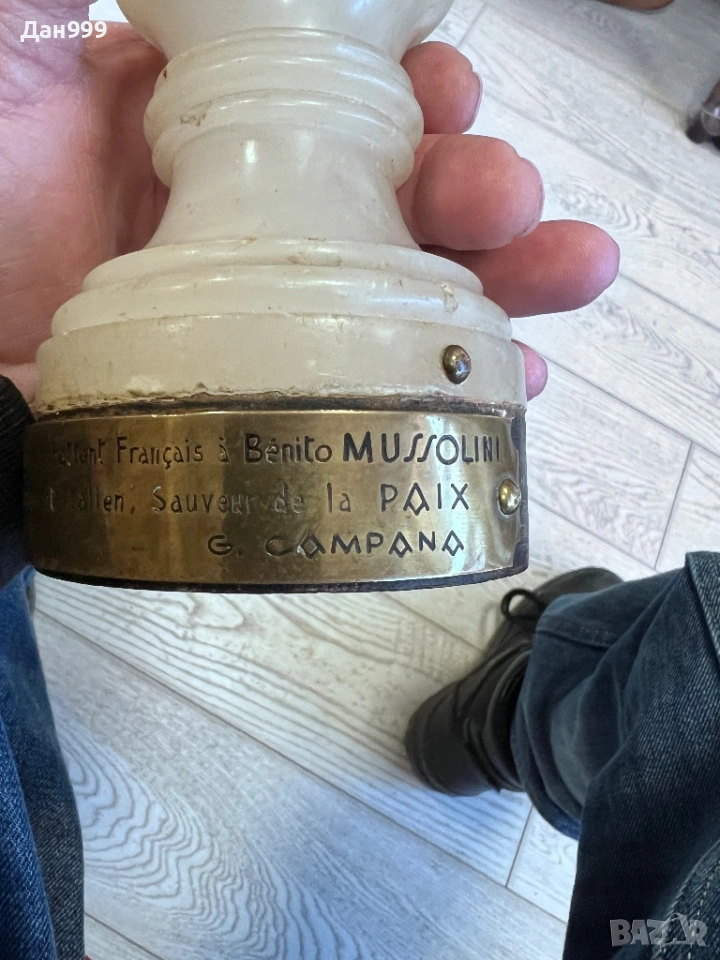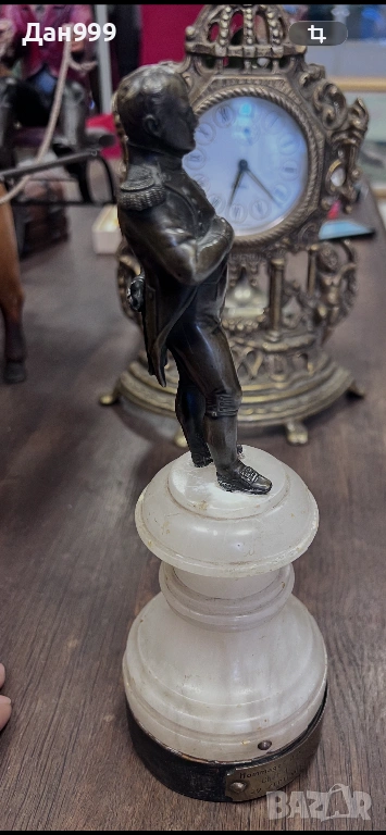Продавам уникална бронзова статуетка на Наполеон Бонапарт с основа от бял оникс . Статуетката е оригинал и вероятно една единствена подарена от френски ветеран на 29 септември 1938 година , на Бенито Мусолини спасител на мира . Статуетката е от личната колекция на един от най големите колекционери в Европа G.Campana . Изключително детайлна , уникална майсторска изработка неповторима безценна .Джовани Пиетро Кампана (Giovanni Pietro Campana, 1808–1880) — прочут италиански колекционер на изкуство и античности от XIX век.