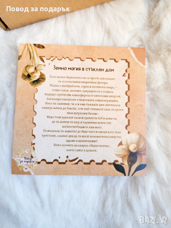 • ​Картичка с пожелание: Красиво послание, което обяснява силата на кристалите. 🍀