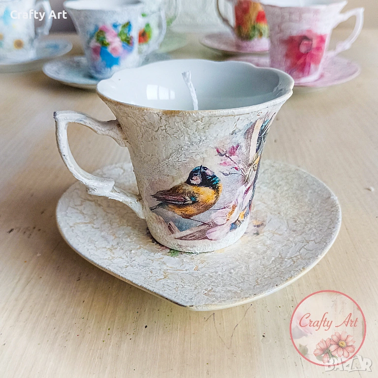 Тази нежна ароматна свещ от натурален соев восък с добавен аромат на Момина сълза ще внесе в дома ви уют и топлина. 😊 Свещичката е побрана в порцеланова чашка, декорирана с техника декупаж, съдържа около 50-60гр восък и е подходяща за подарък за ценители на естетиката. Разгледайте и другите варианти в обявите.