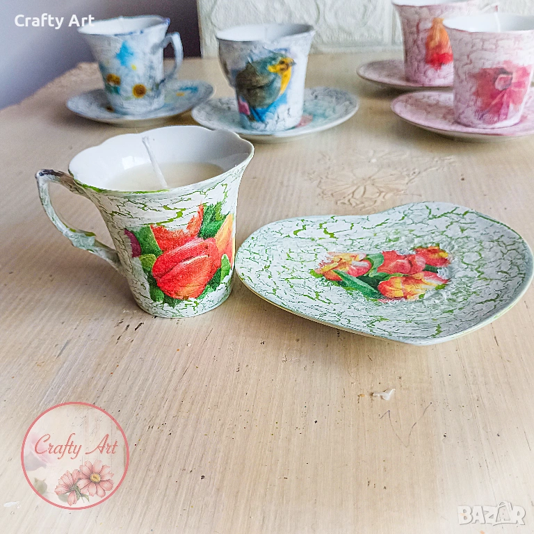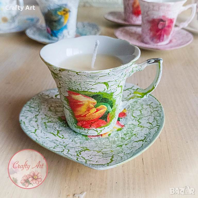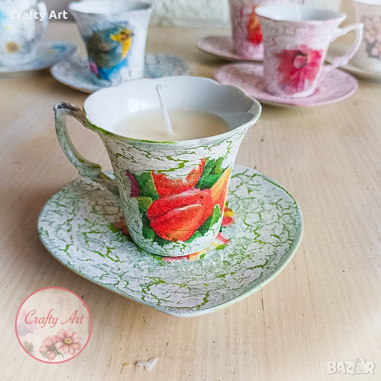 Тази нежна ароматна свещ от натурален соев восък с добавен аромат на Момина сълза ще внесе в дома ви уют и топлина. 😊 Свещичката е побрана в порцеланова чашка, декорирана с техника декупаж, съдържа около 50-60гр восък и е подходяща за подарък за ценители на естетиката. Разгледайте и другите варианти в обявите.