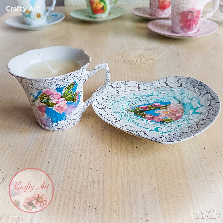 Тази нежна ароматна свещ от натурален соев восък с добавен аромат на Момина сълза ще внесе в дома ви уют и топлина. 😊 Свещичката е побрана в порцеланова чашка, декорирана с техника декупаж, съдържа около 50-60гр восък и е подходяща за подарък за ценители на естетиката. Разгледайте и другите варианти в обявите.