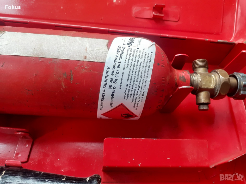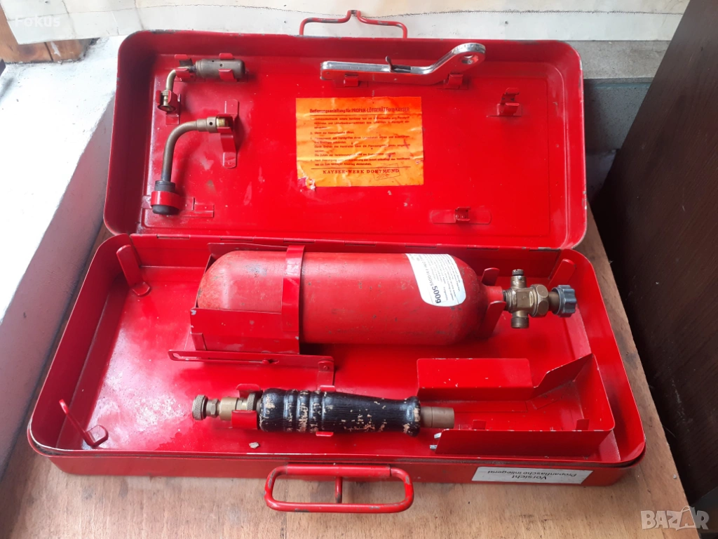 Комплект от горелка, бутилка, две дюзи и запалка в солиден метален куфар.