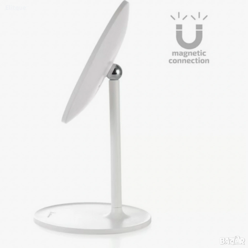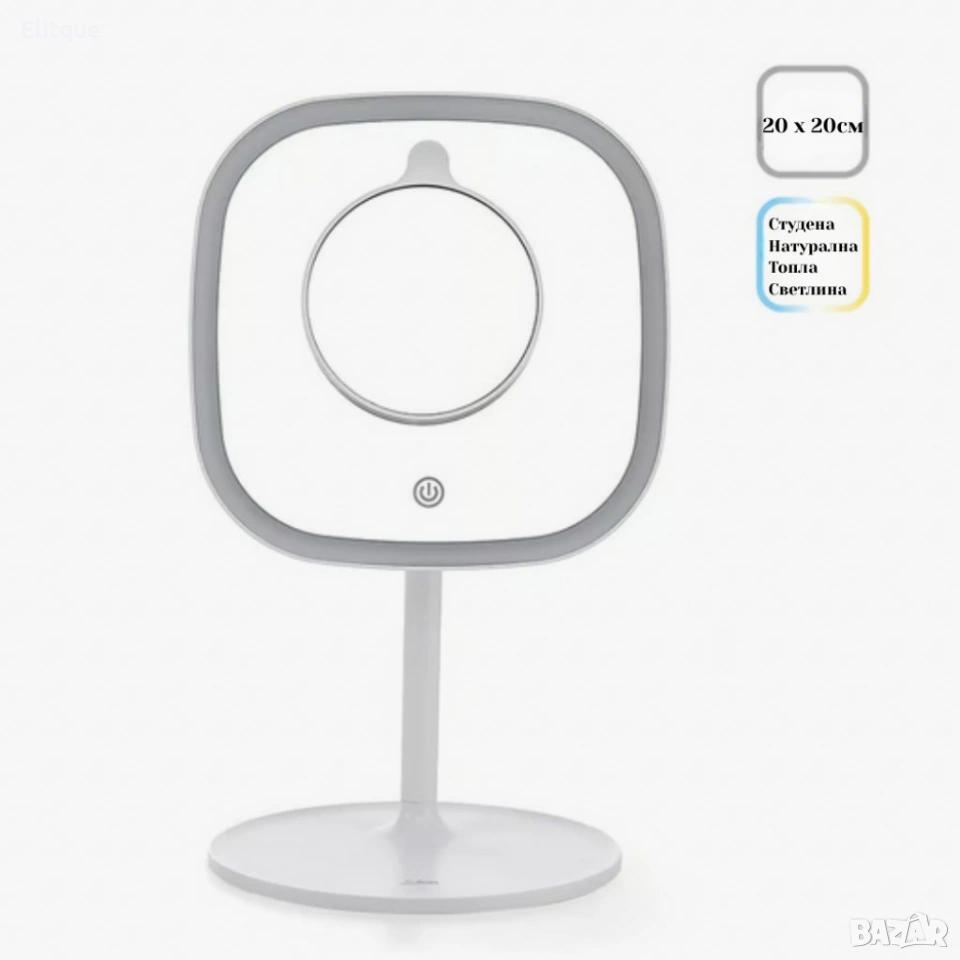 Технически характеристики на LED козметично огледало за грим Luigi Ferrero FR- 805M, квадрат, 20x20 cm Ключовите технически параметри дават увереност в надеждността на устройството: Размер огледало: 20 x 20 cm (квадрат) Тип осветление: LED, три режима — студена, топла, естествена Управление: сензорно ON/OFF и безстепенно регулиране на яркостта Батерия: 1x 2000 mAh презареждаща се Li-ion, до 3 часа при максимална яркост Време за зареждане: около 4 часа Включени аксесоари: USB-C кабел за зареждане Допълнително: подвижно 5X увеличително огледало, малка вендуза за закрепване, магнитна глава с 360° въртене