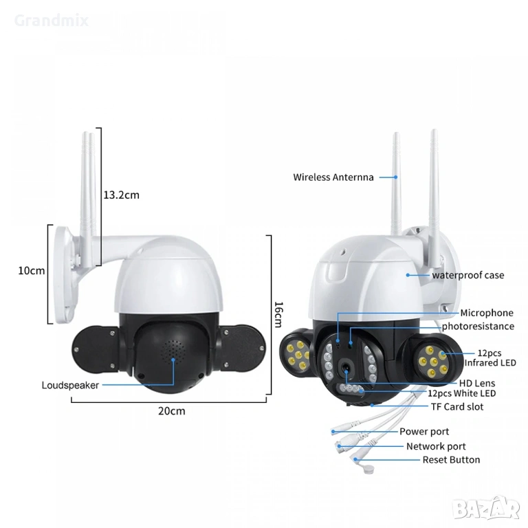 Висока резолюция с 5MP. Наслаждавайте се на видео с разделителна способност 2560x1920 за кристално ясни изображения. С 12 бели и 12 инфрачервени светлини, камерата осигурява цветни и черно-бели видеоклипове дори през нощта. Белите светодиоди се включват при засичане на движение. Камерата може да се движи на 270° хоризонтално и да се накланя на 90° вертикално, осигурявайки 360° панорамно покритие. Засича движение и автоматично следи движещи се обекти, като прожекторите се включват при засичане на човек. Използвайте Cloud APP за дистанционно управление на камерата и за проверка на записите отдалечено. Вграденият микрофон и високоговорител позволяват двупосочна комуникация чрез приложението, идеално за общуване със семейството или за изплашване на нежелани гости.