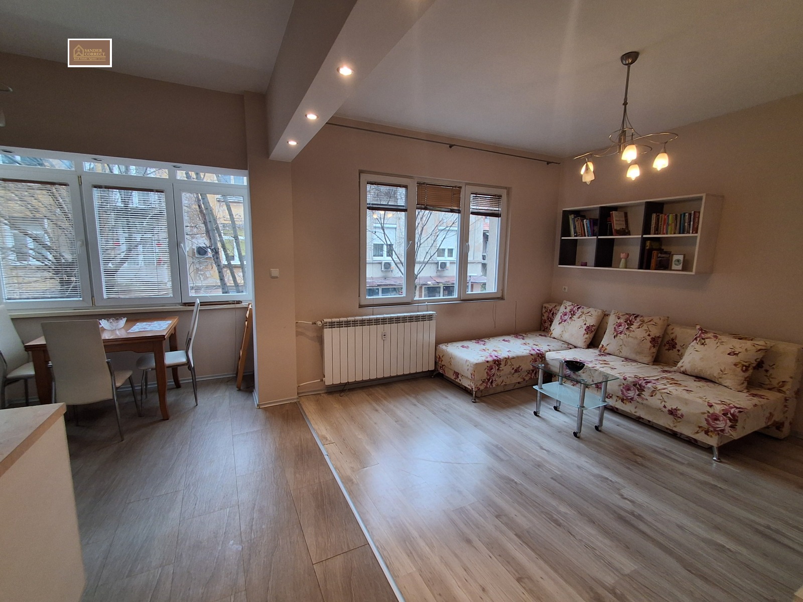 Real estate agency 'Sander Correct' rents a fully furnished one-bedroom apartment in the ideal center. Excellent location - Iskar St., near G. S. Rakovski St. and Dondukov Blvd., many state institutions, the center of Sofia.The building has been renovated - low heating costs. Quiet and extremely pleasant apartment. Equipped with furniture and white goods. Excellent condition. Heating and hot water are provided by central heating. Layout: entrance hall, spacious living room, kitchen with dining room, bedroom, bathroom with toilet. Long-term rental. Smoking and pets are not allowed. For more information and viewings: Biser Bonev, tel.: 00 359 888 605 571.