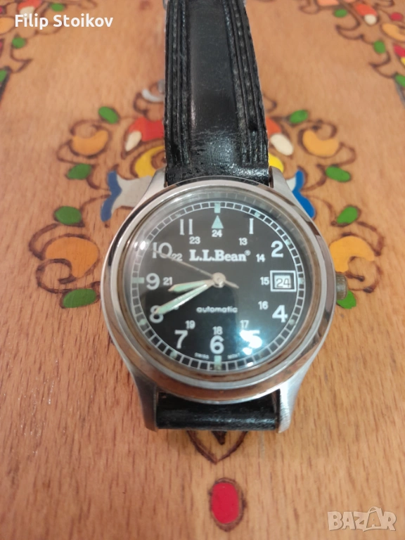 Мъжки Швейцарски Полеви часовник, произведен за L.L.Bean. Автомат с датник и много оригинална верижка. Работи точно. D 36 мм без коронката.стоманен корпус.