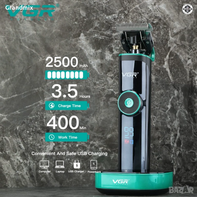 Високоефективна безжична машинка за подстригване, създадена специално за съвременния мъж, който търси стил, прецизност и удобство в едно устройство. Съчетавайки професионално качество с модерни технологии, тя предлага гъвкавост за подстригване на брада, коса, вежди и тяло. Мощната 2500 mAh литиево-йонна батерия осигурява до 400 минути непрекъсната работа, а USB зареждането позволява универсално захранване навсякъде и по всяко време. Благодарение на цифровия LED дисплей, потребителят има ясен поглед върху оставащото време на работа и състоянието на батерията. Ротационният мотор с 6500 оборота в минута гарантира плавно и мощно подстригване, дори при по-гъста коса. Независимо дали се нуждаете от бързо освежаване на визията или от пълно оформяне – VGR V-671 е вашият надежден партньор в ежедневната грижа за външния вид.