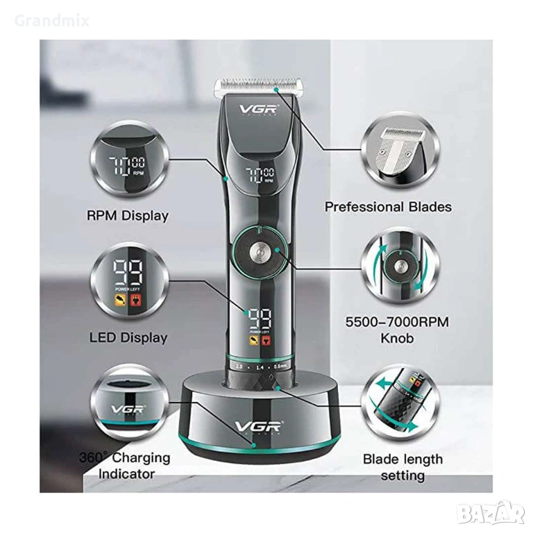 Мaшинка за oформяне и подстригване VGR V-256. Изключително прецизна за професионално бръснене, подкъсяване и оформяне на косата, лицевото окосмяване и интимната зонаи батерия с дълъг живот. Тримера има закалено острие, което гарантира дълъг живот със слабо захабяване.