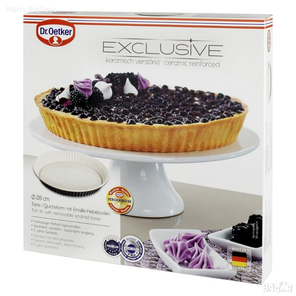 Диаметър: 28 см Височина: 4 см Материал: листова стомана с емайлирано повдигащо се дъно Покритие: незалепващо с керамично подсилване за допълнителна издръжливост Употреба: основата подходяща за съдомиялна машина; ръбовете се препоръчва почистване на ръка Производител: Dr. Oetker — качество, съчетано с функционалност