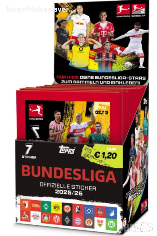 Албумът за стикери на немското първенство Бундеслига е с оригинално име: Topps Bundesliga 2025-2026 е на цена 7€ (меки корици)(главна снимка).