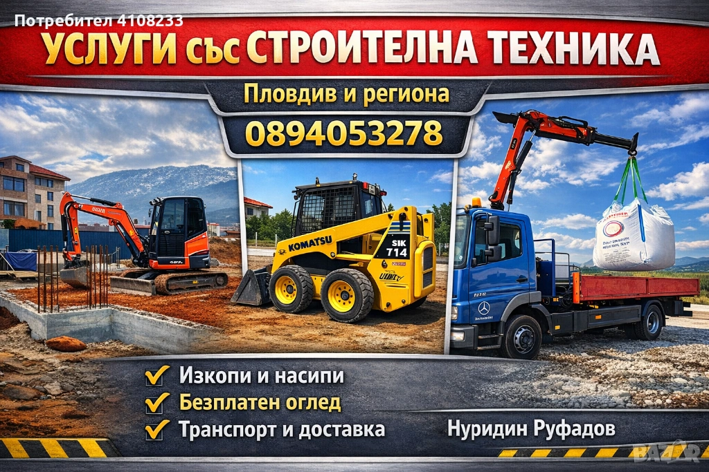 Услуги с малък багер и бобкат Асеновград с.Белащица с.Брестник с.Марково гр.Пловдив региона