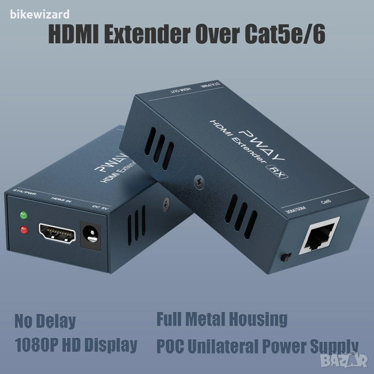 Pway PW-HT202PG HDMI удължител през Ethernet 1080p@60Hz, 3D, през единичен Cat5e/Cat6/Cat 7 НОВО