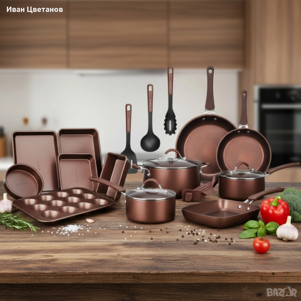 Комплект 20 части Edenberg EB-5655 от кован алуминий — незалепващо мраморно покритие