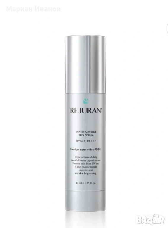 Продавам Rejuran Water Capsule Sun Serum SPF 50+ (40 mL) – лек слънцезащитен серум с висока UV защита и хидратиращ ефект.