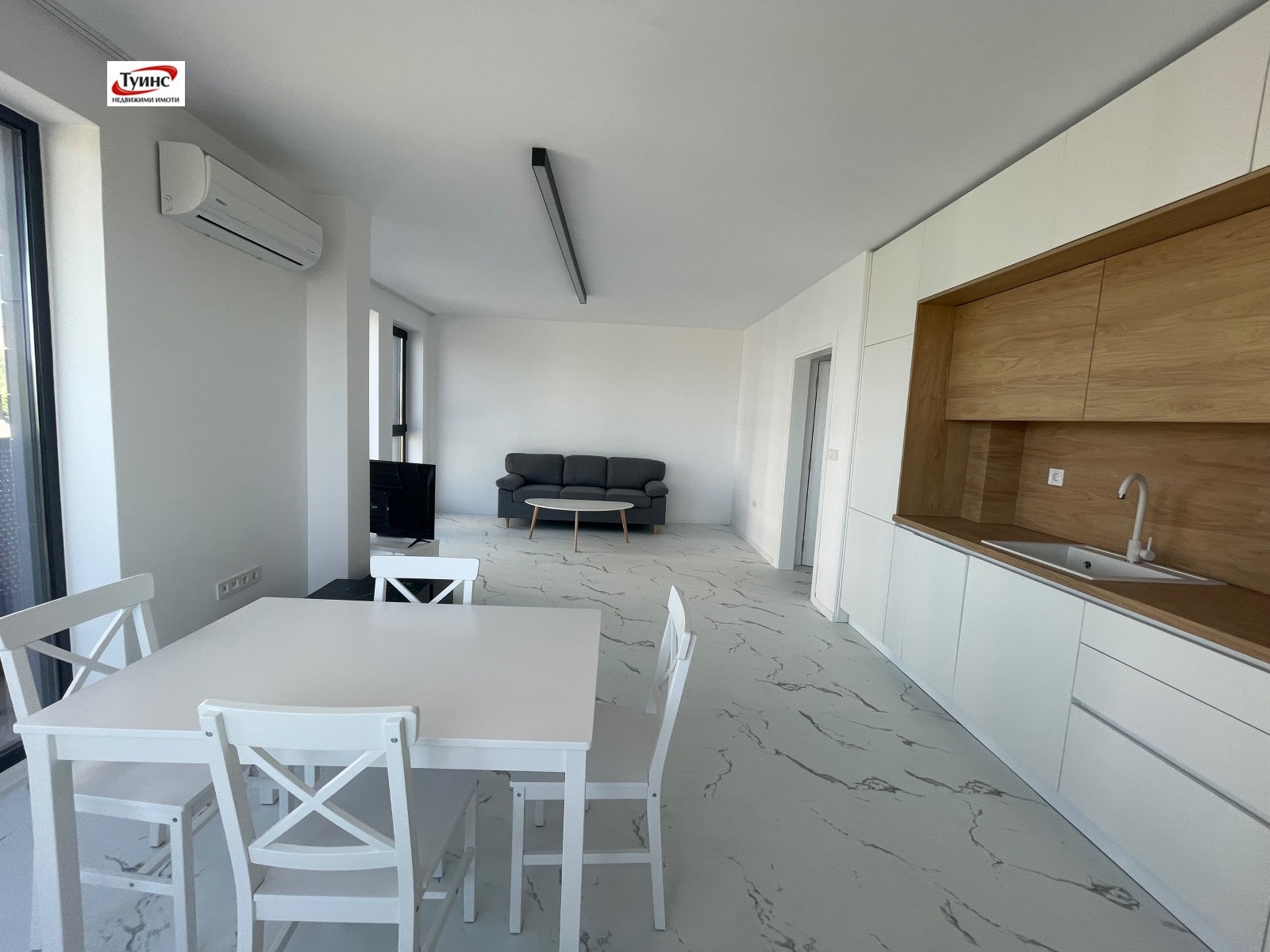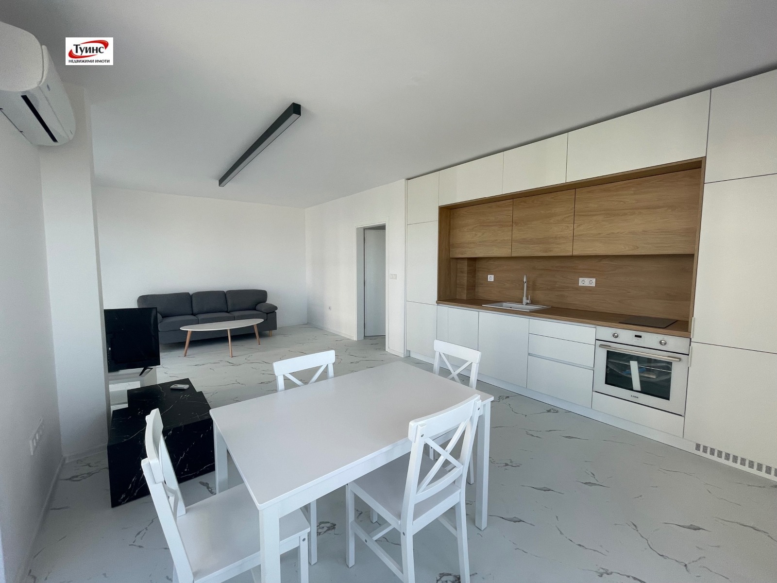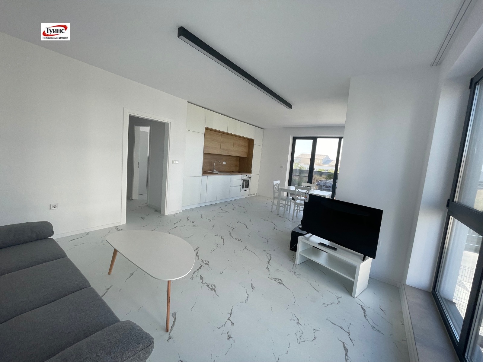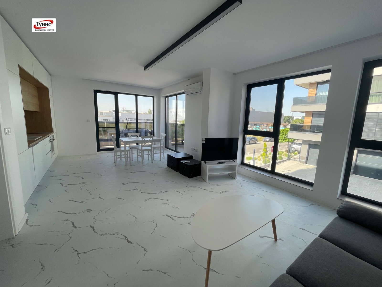 ТУИНС недвижими имоти предлага на Вашето внимание 3-ен апартамент в нова кооперация, кв. Кършияка. Разпределение - просторен хол с трапезария и кухненски бокс, 2 спални, 2 санитарни възела, 2 тераси, антре. Жилището ще бъде напълно обзаведено по. желание на клиента. Климатици във всички помещения. Тихо място за живеене.
