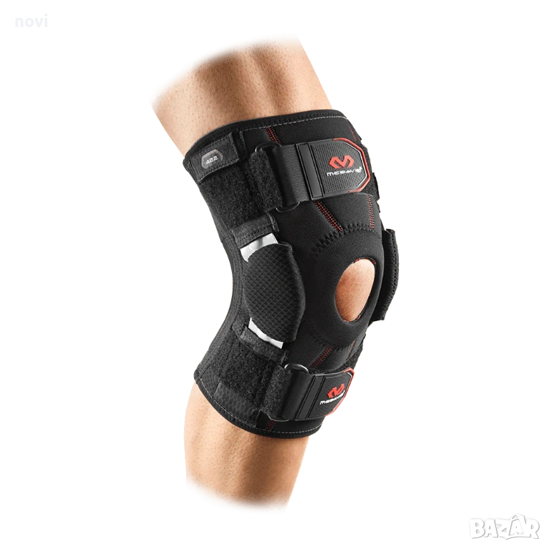 Наколенката е тип „шарнирна“ (hinged knee brace), което означава, че използва механични елементи за стабилизиране на ставата.