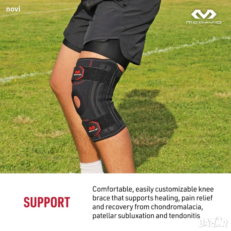 360° поддръжка: Оборудвана е с горни и долни регулируеми каишки, които позволяват индивидуално пристягане и не позволяват на наколенката да се свлича.