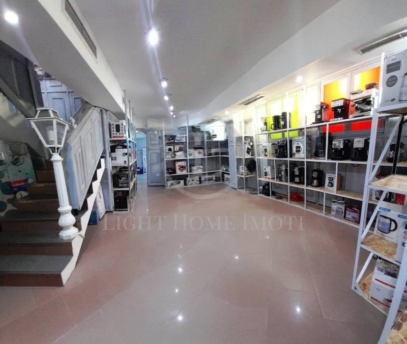 - Разпределение: Състои се от две нива: Партерно 60 кв.м и сутеренно 80кв.м. Две просторни търговски зали, склад , офис и санитарен възел.
