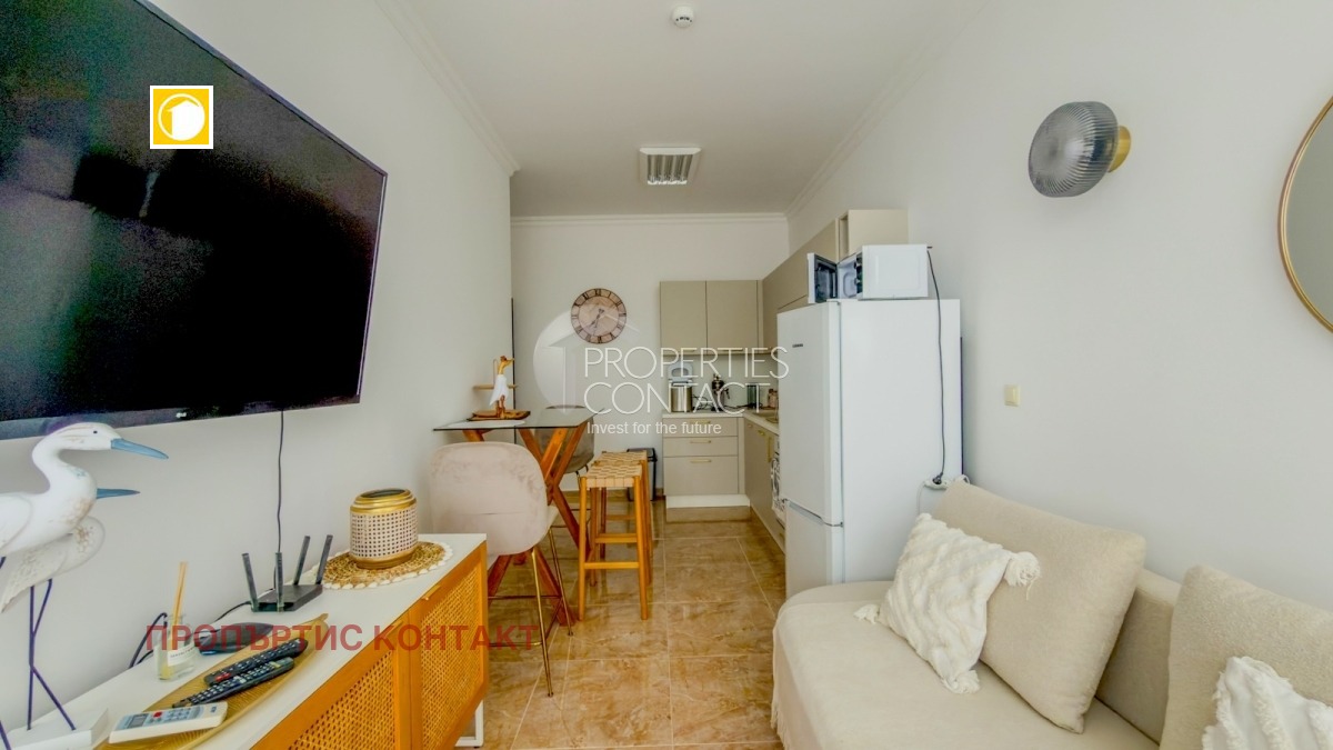Предлагаме за продажба напълно обзаведен двустаен апартамент в луксозния комплекс Адмирал, разположен в южната част на Свети Влас, само 250 метра от пясъчните плажове и яхтеното пристанище. Имотът е с площ 62 кв.м, намира се на партерен етаж . Разпределение: входно антре всекидневна с кухненски бокс спалня баня с тоалетна тераса Апартаментът се продава напълно обзаведен и оборудван, в отлично състояние, готов за незабавно нанасяне или отдаване под наем. Удобства в комплекс „Адмирал“ (Premium Luxury Residence): 24/7 рецепция и охрана открит басейн за възрастни и деца панорамен ВИП басейн на покрива с бар закрит басейн СПА център и зона за красота фитнес център ресторант търговски площи (7 магазина) конферентна зала 123 паркоместа, от които 106 покрити ? Такса поддръжка: 600 евро / година ? Отличен имот за ваканционно ползване, целогодишно живеене или инвестиция в имот на морето.