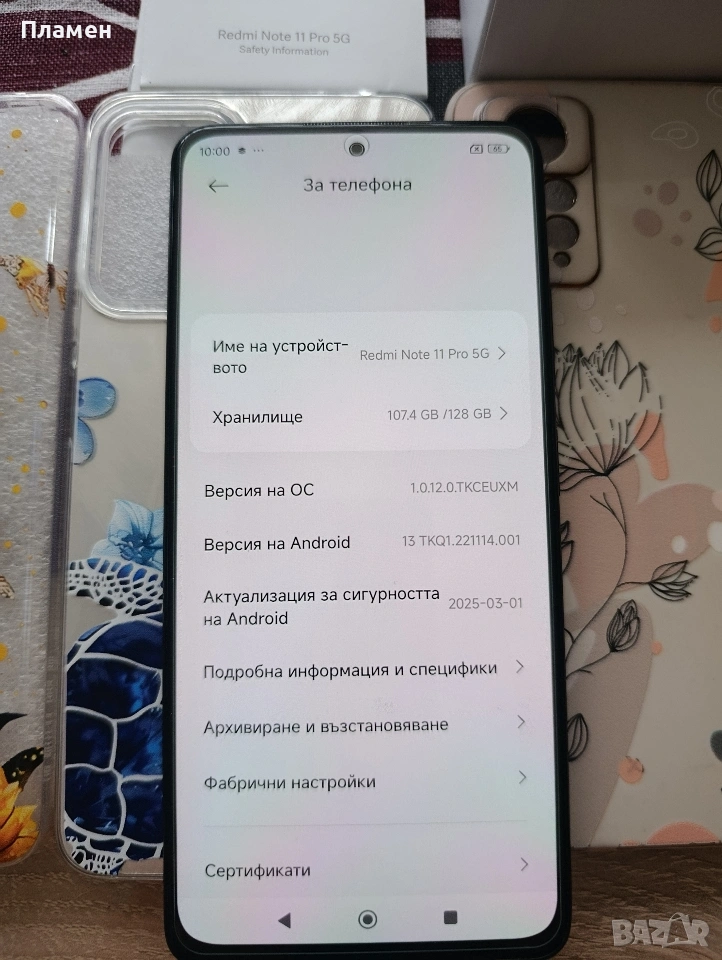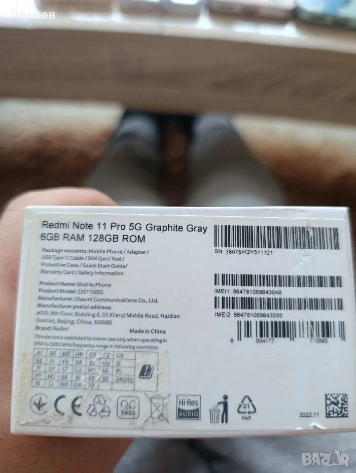 Продавам Xiaomi Redmi Note 11 Pro 5G 6 ram 128 Gb вградена памет. Телефона е перфектен без никакви следи от употреба, давам го с зарядно 30w fast charge, 5 кейса подарък и 3 стъклени слюди. Телефона работи перфектно. Винаги е носен с кейс и защитно стъкло.
