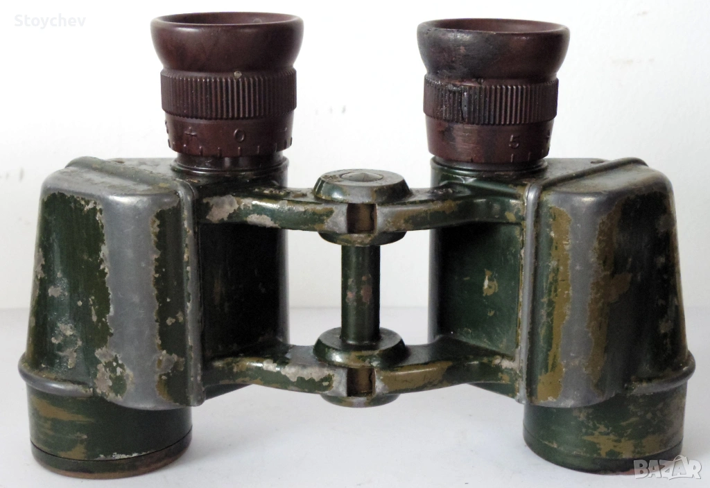 Много добро състояние. Нормални, нефрапантни следи от употреба по корпуса с цели наочници, здрави и почти чисти лещи и призми, работеща разделна фокусировка. Сериен номер 118483, вероятен период на производство края на 30-те години на миналия век