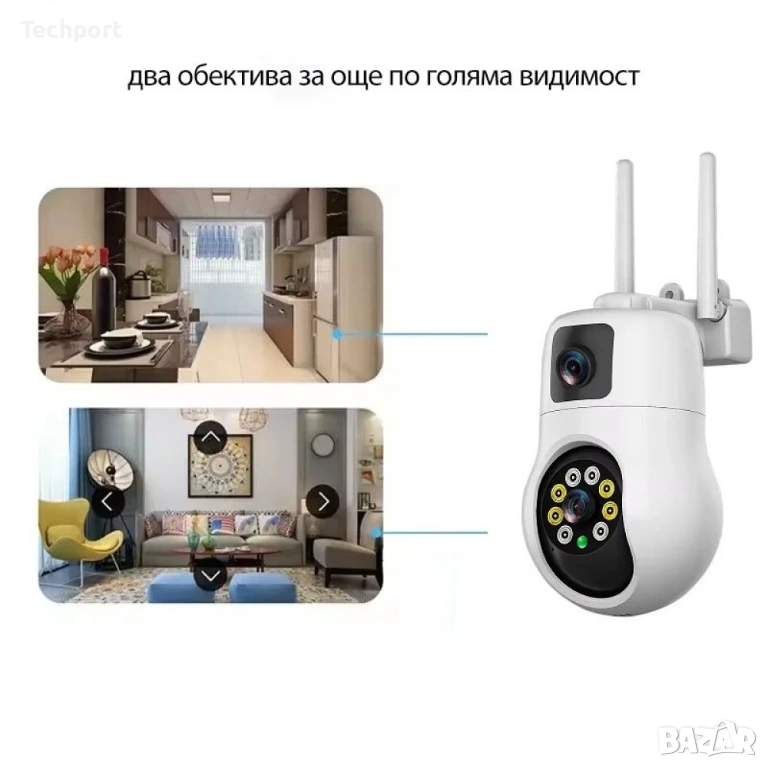 Изключителна визуализация: Съчетава PTZ камера и камера за всестранно наблюдение, предлагайки детайлен двоен преглед в приложението.