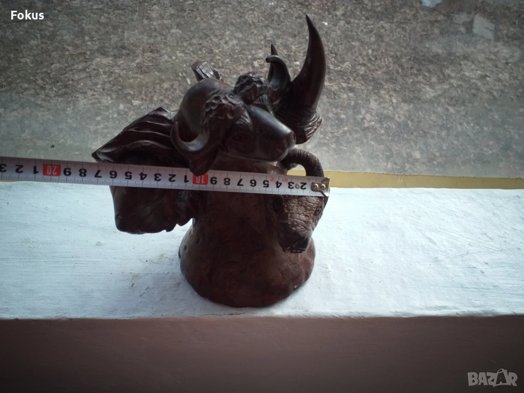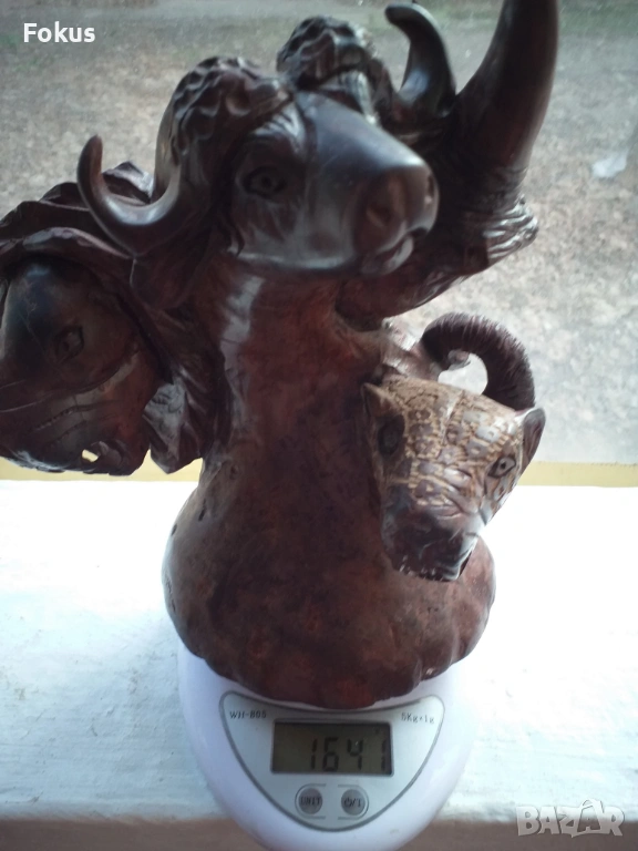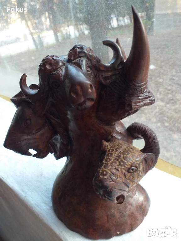 Статуетката е изработена от абанос и изобразява петте големи животни на Африка а именно лъв, бивол, слон, леопард и носорог.