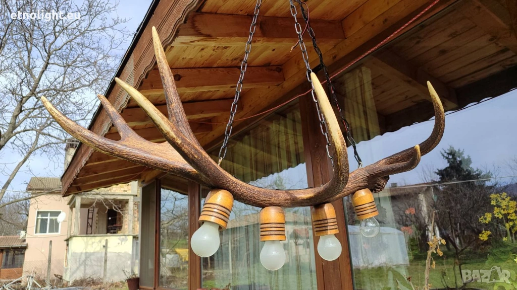 Ръчно изработен полилей,лампа,осветление от масивен рог с дървени чашки, снимка 1 - Полилеи - 53503757 Ръчно изработен полилей,лампа,осветление от масивен рог с дървени чашки, снимка 2 - Полилеи - 53503757 1/2