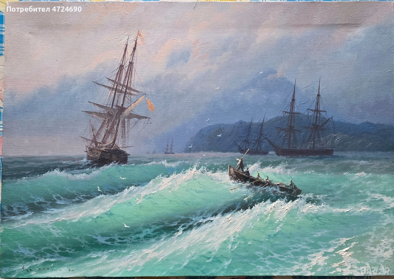 Продавам картина,по мотивите на Айвазовски"Деветият вал"Размери: 35*50.