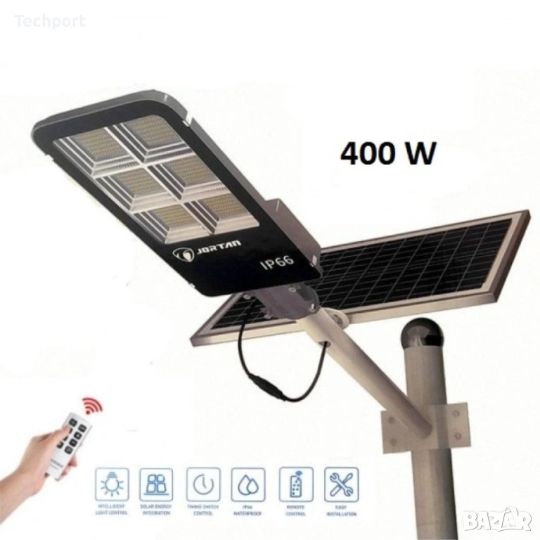 Соларното улично осветление може да се монтира на стълб или стена – вкл. инструменти в комплекта