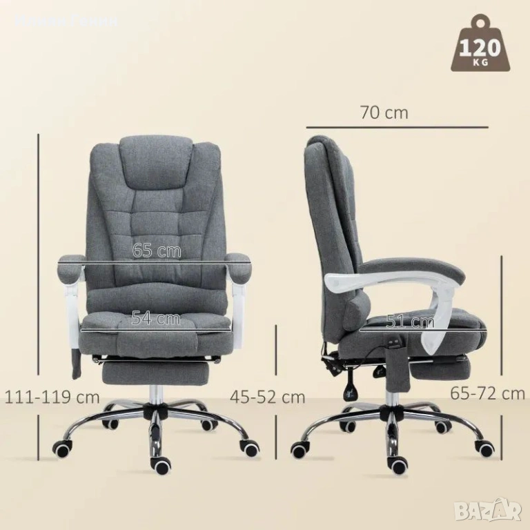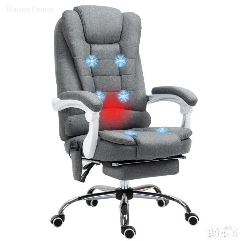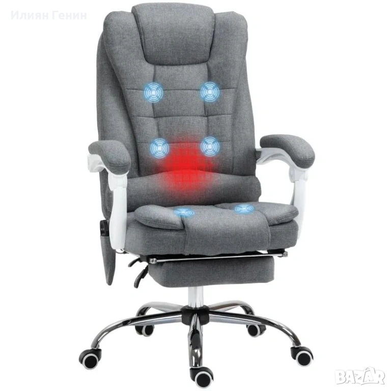 Офис стол Vinsetto с функция за масаж и отопление, накланяща се облегалка, въртящ се и регулируем по височина, до 120 кг, сив - 170.00 €.