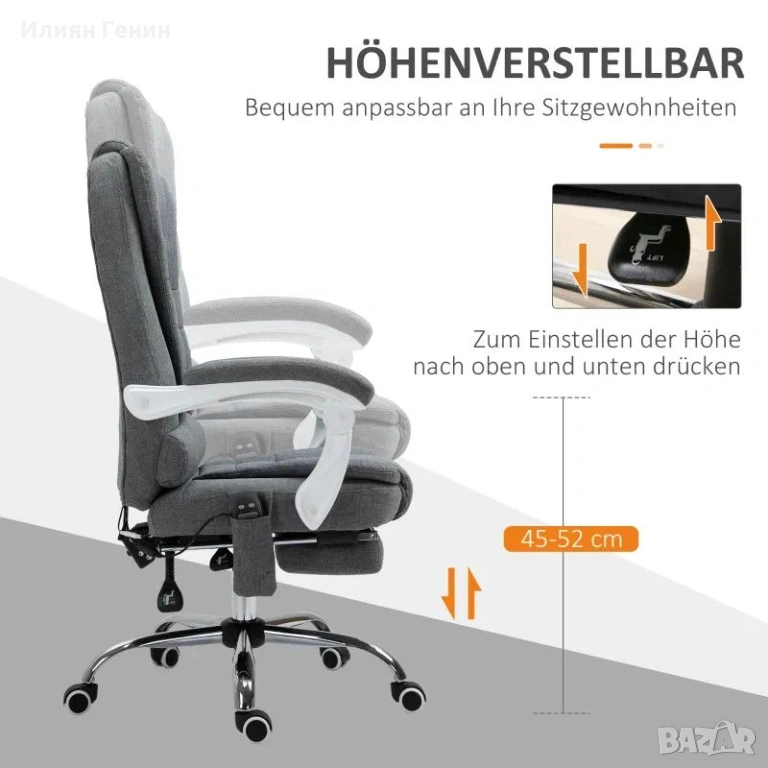 ✔ Регулируема височина на седалката на офис стола с функция за накланяне за оптимално адаптиране към различни височини на бюрото и предпочитания за сядане