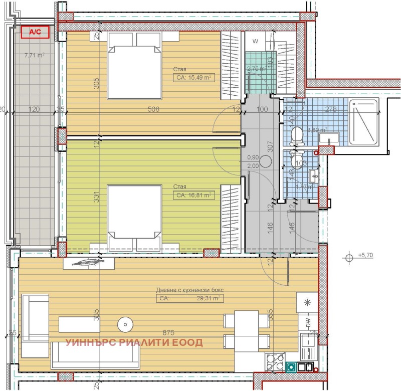 Агенция ' Winners Reality ' представя тристайно жилище 114 кв.м. на ет.3 в м-т Гърдова глава. БЕЗ КОМИСИОН за купувача. Разпределението е : трапезария с кухненски бокс, две спални, две бани с тоалетни,тераса и склад. Изложение юг. Има възможност за закупуване на гараж 45 000 евро или паркомясто 20 000 евро. Сградата ще бъде луксозна и модерна на четири етажа. Има Акт 14, скоро се очаква и Акт 15. Гъвкава схема на плащане: 30% при предварителен договор и 70% да три месеца.