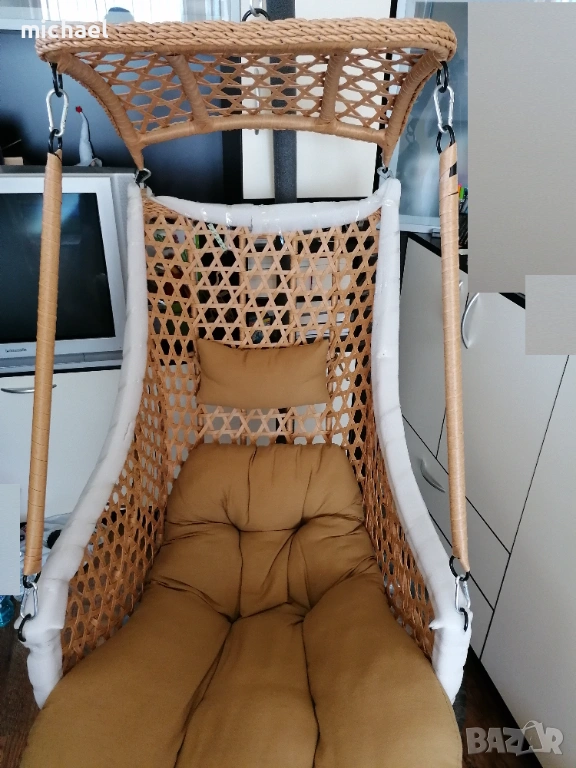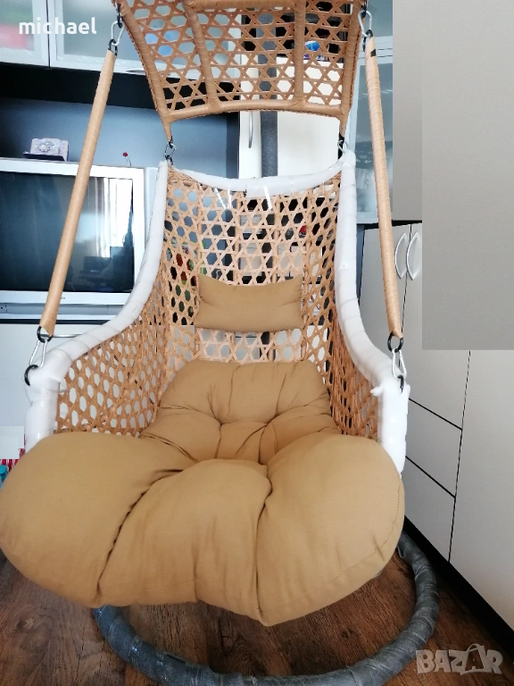 Продавам люлка Виденов Берна с размери 120 х 90 х 78 см, бежова. Основата/стойката е окръжност. Използвана е малко и само в стая (никога не е стояла навън), дори не е напълно разопакована.