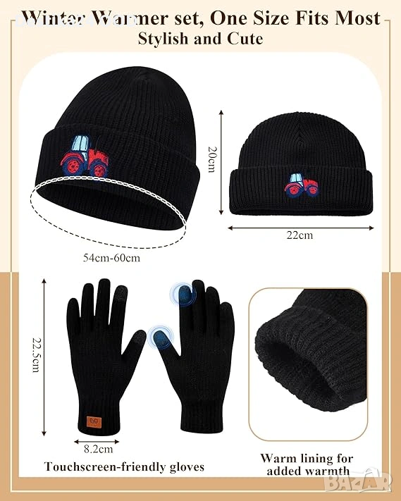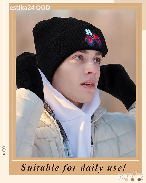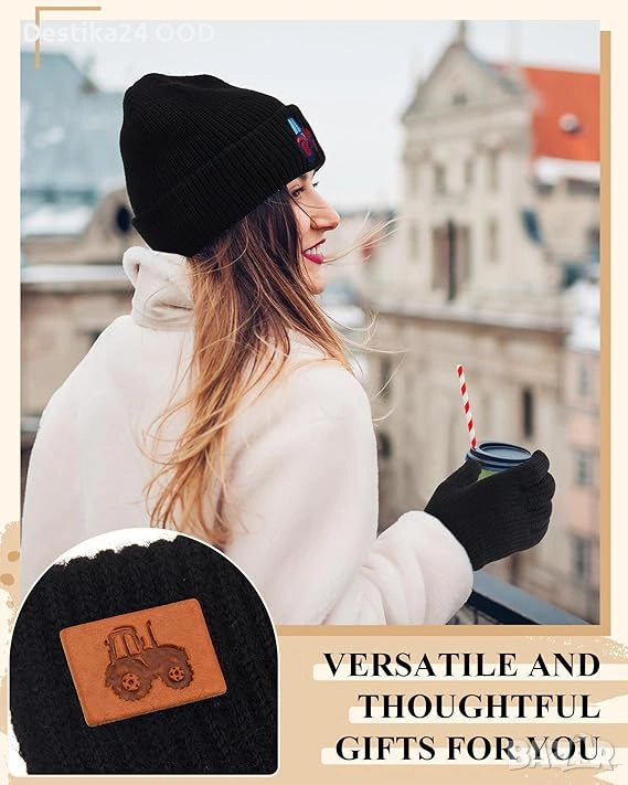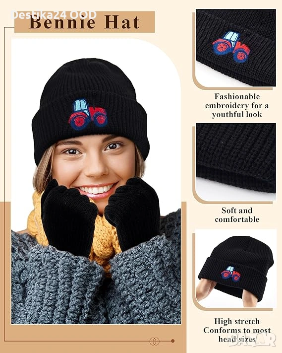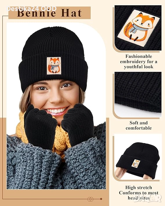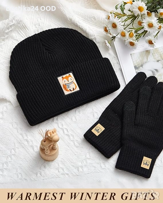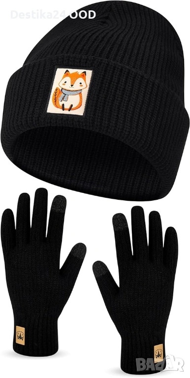 Топъл зимен комплект дамска плетена шапка и ръкавици от полар. Комплектите са меки, удобни и подходящи за студено време.