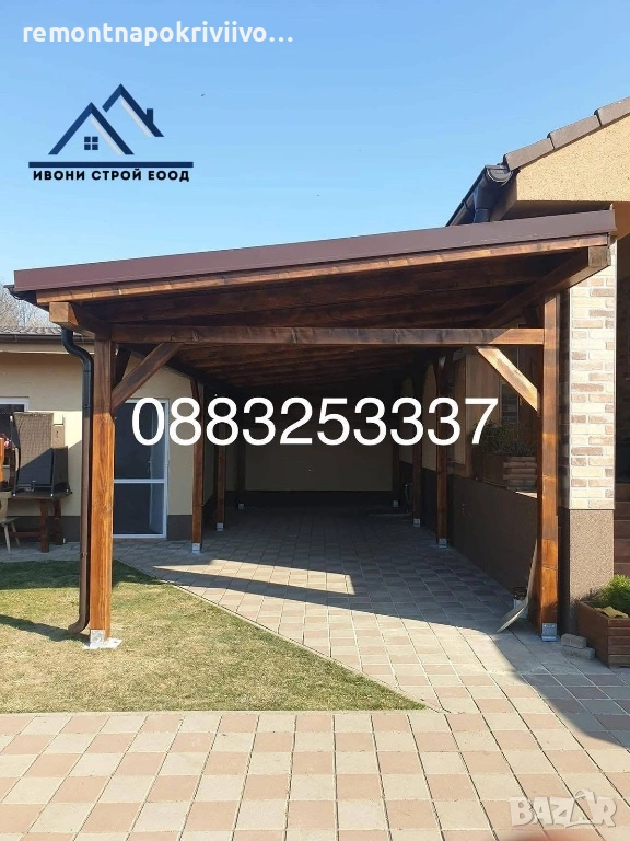 Изграждане на дървени навеси, гаражи, беседки и перголи от импрегниран дървен материал – Без аванс! 20 години гаранция!