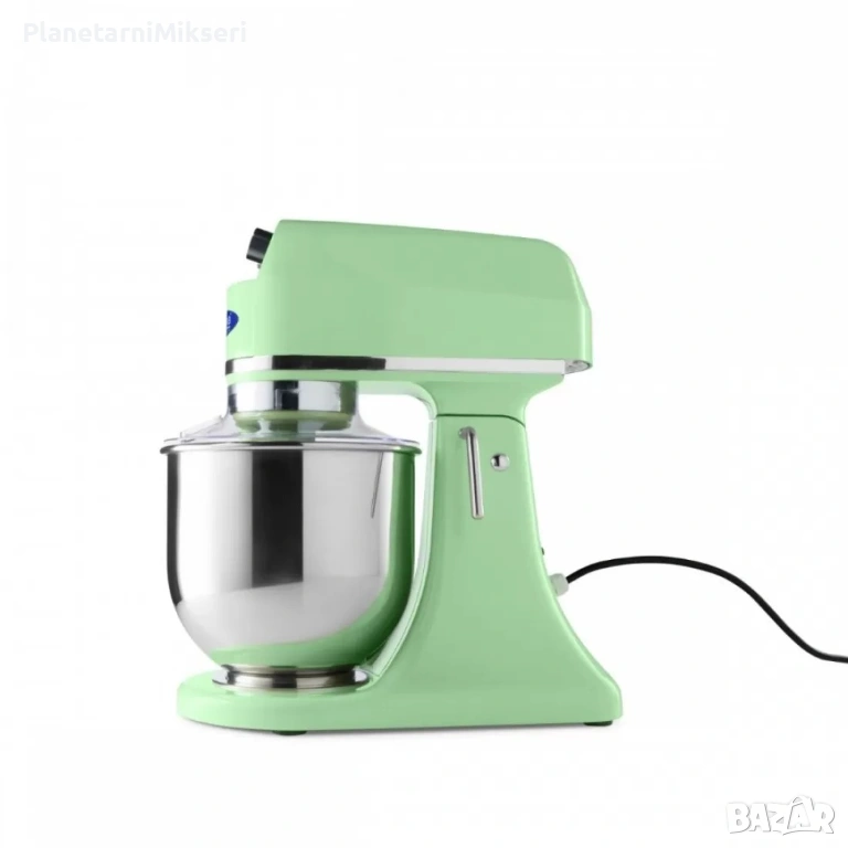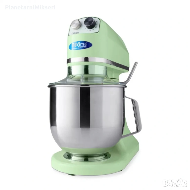 Планетарен миксер 7 литра Maxima, пастелно зелено – професионална производителност и стил в едно. Подходящ за сладкарници, пекарни, ресторанти и взискателни домашни кухни. Мощност 350 W, 11 скорости (100–938 об./мин), метални зъбни колела и тиха работа. Купа 6,5 л от неръждаема стомана – до 2 кг тесто за пица. Включени бъркалка, плоска месачка и кука за тесто. CE сертифициран. Обадете се на посочения телефон за поръчка и консултация. Доставка: 10 лв под 499 лв, над 499 лв – безплатна.