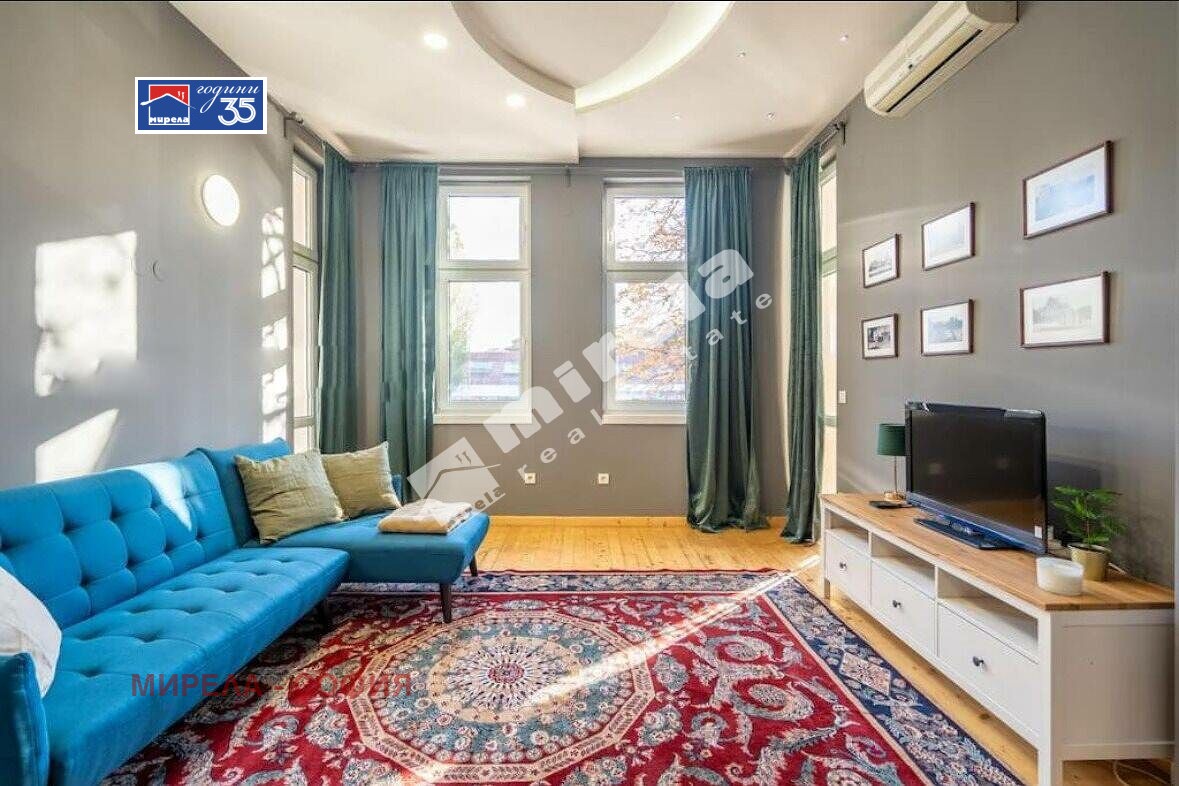 Имотът има жилищен статут; Има надземно паркомясто; Сградата няма асансьор; Продава се с обзавеждане, което подлежи на уточнение; ЕТАП НА СТРОИТЕЛСТВО: разрешение за ползване (Акт 16); ОТОПЛЕНИЕ: климатик; Има 2 балкона/тераси; Ремонтиран; Луксозен имот; Преходен; ВИД СТРОИТЕЛСТВО: тухла; ГОДИНА НА СТРОИТЕЛСТВО: 1940 г.; ИЗЛОЖЕНИЕ: юг; СПАЛНИ: 2; БАНИ: 2; ДОГРАМА: PVC