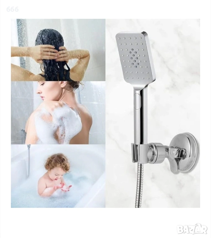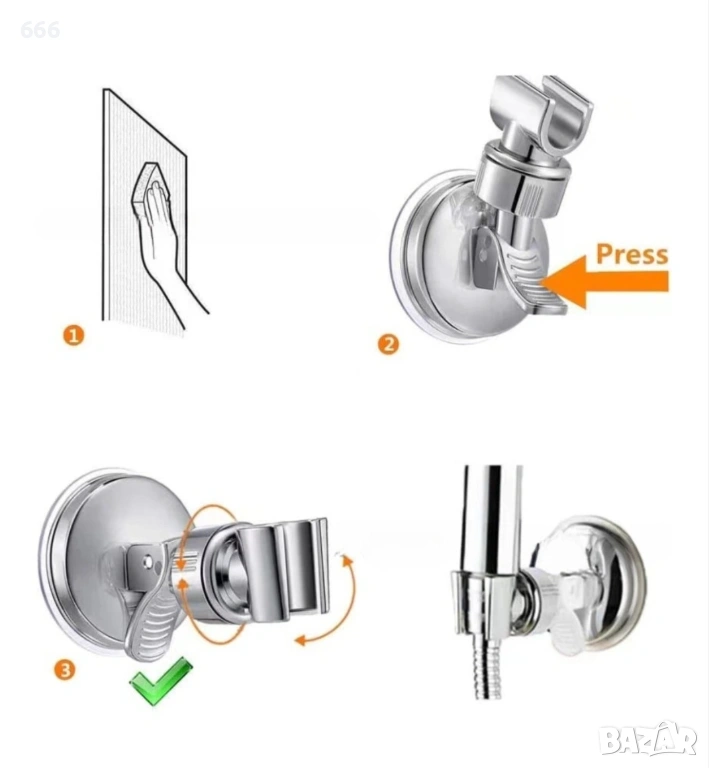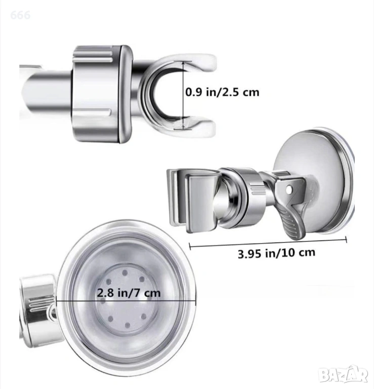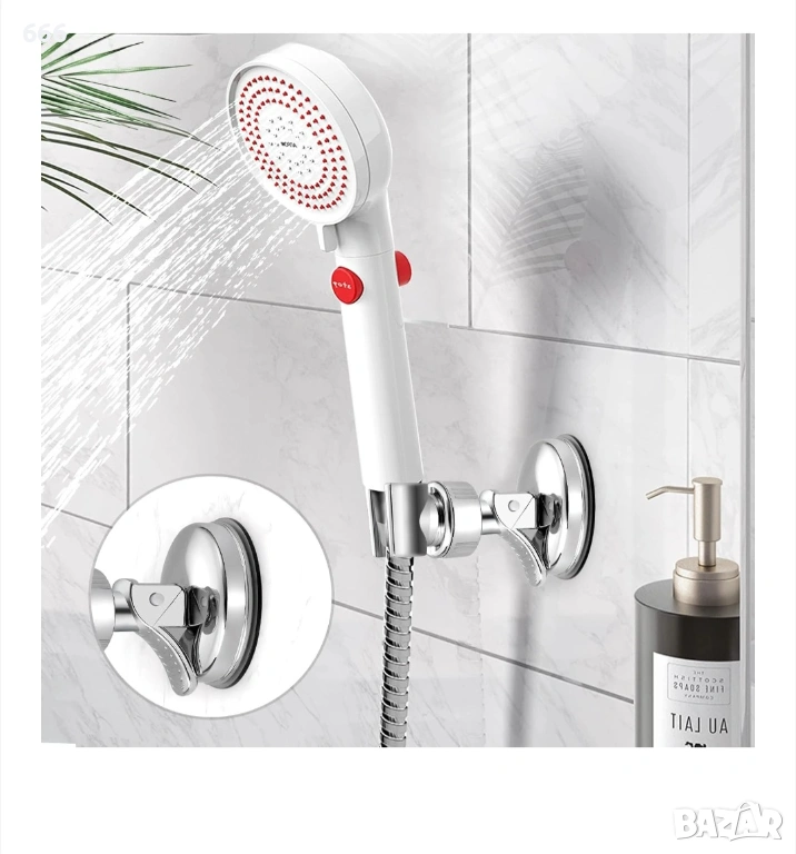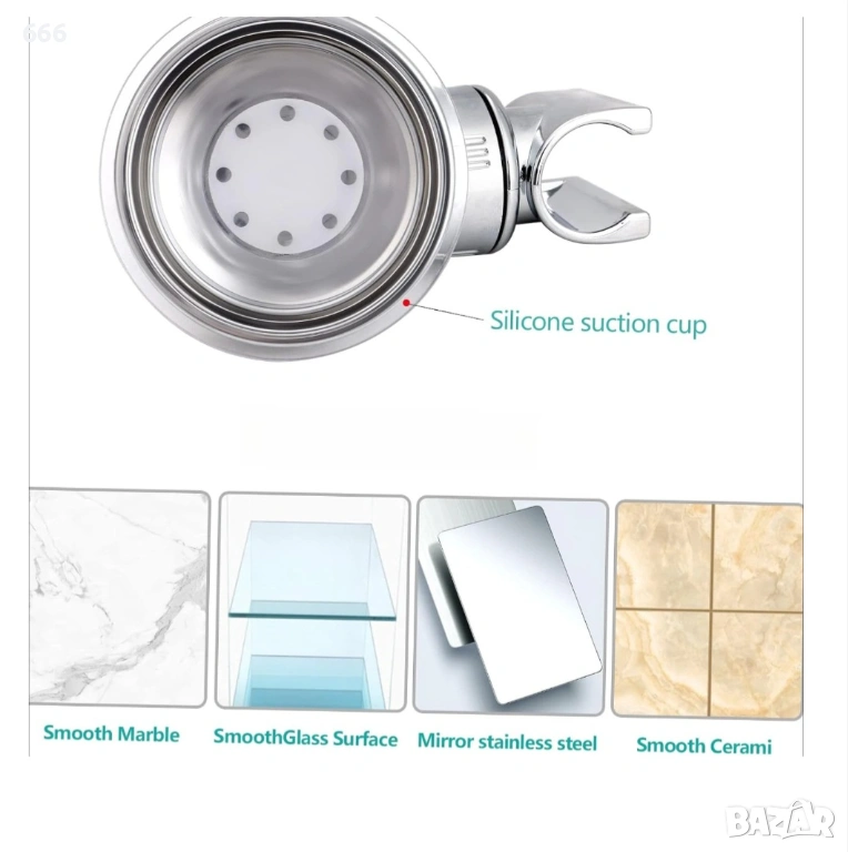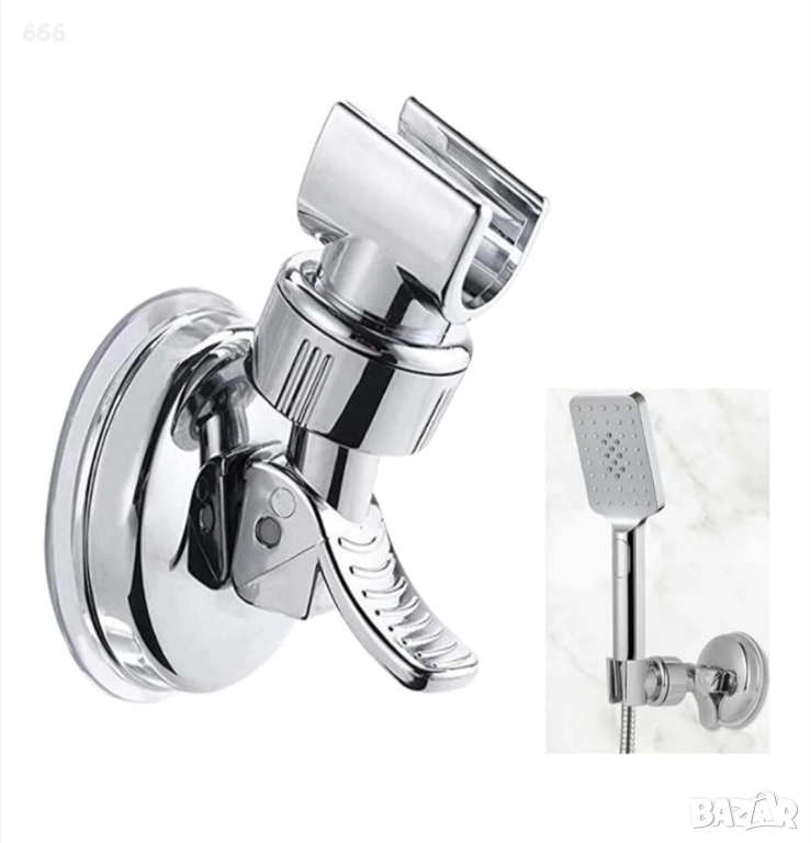 Стойка за душ слушалка, вендуза, регулируема, пластмасова, сребриста → Обява 53504775