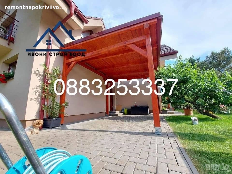 Изграждане на нови покриви дървени навеси, гаражи, беседки и перголи от импрегниран дървен материал – Без аванс! 20 години гаранция!
