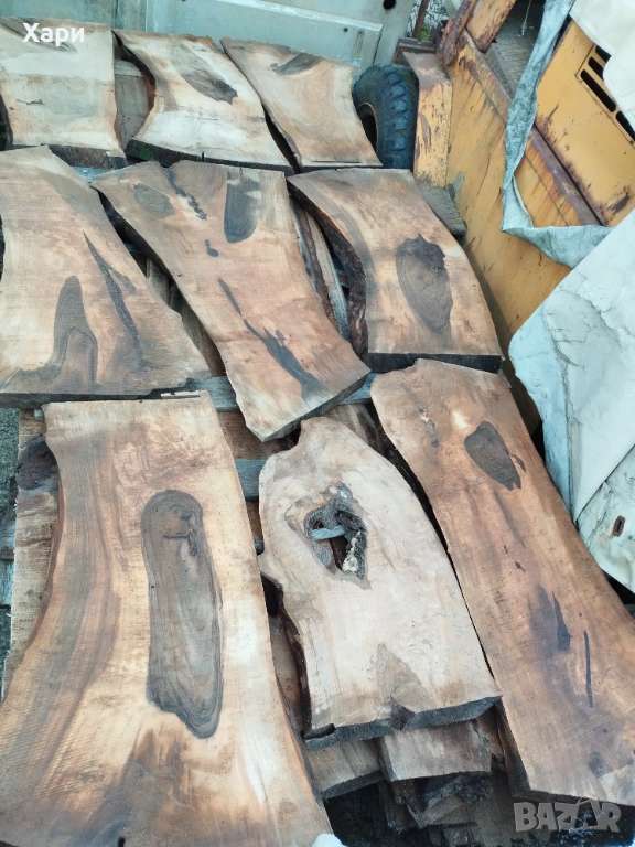 Орехови талпи, специално подбиранеот цветност и декорацоя с производсвени марки, с дебелина 5 см. дължина 2.30 м. и 1 метър. Подготвени са за направата на скъпи и луксозни маси, предназначени за заможни хора.