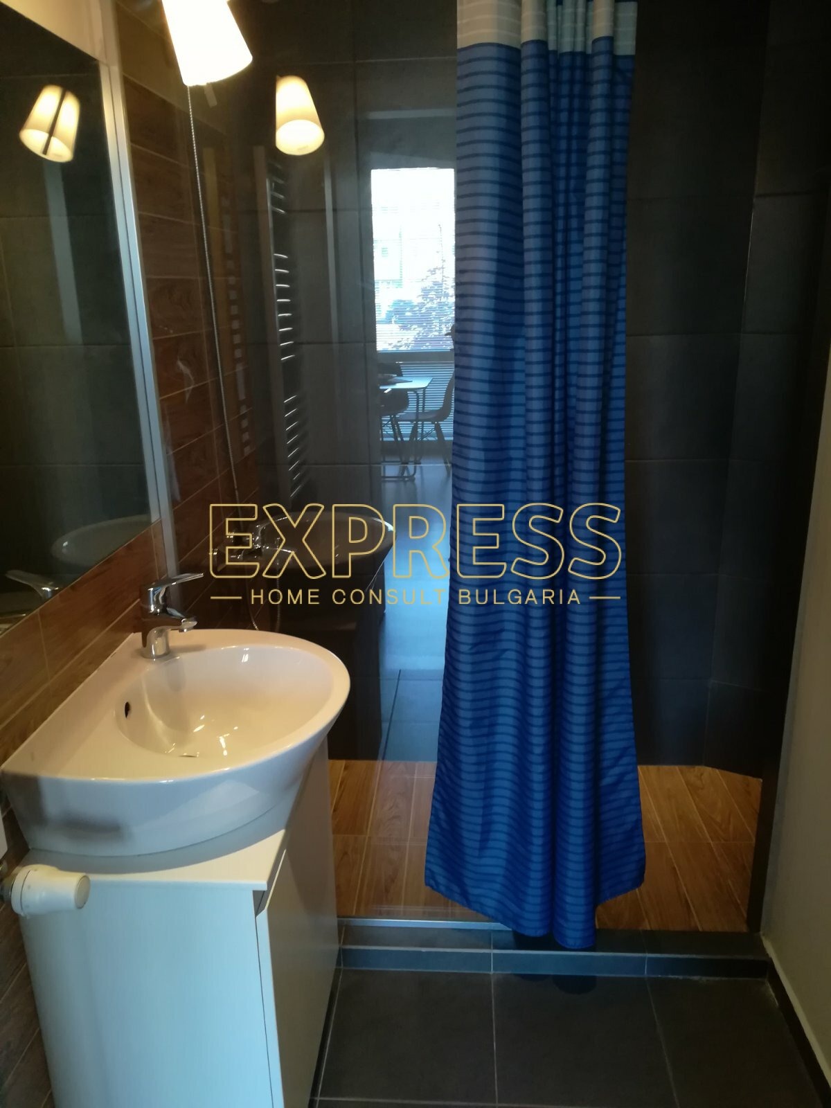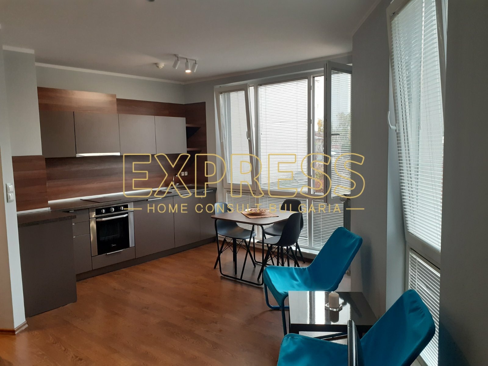 Възможност за наемане на паркомясто!!! Агенция за недвижими имоти Експрес Дом Консулт България предлага на вашето внимание обзаведен, слънчев едностаен апартамент в комплекс от затворен тип в непосредствена близост до УНСС, множество магазини, хипермаркети, заведения, спирки на градския транспорт. Разпределение: входно антре, хол с кухненски бокс и обособен спален кът, баня с тоалетна, тераса. Имотът е напълно обзаведен с нови модерни мебели, кухня с вградени маркови електроуреди, включително съдомиялна и сушилня, LCD телевизор, инверторен климатик от висок клас. Настилки: под ламинат, гранитогрес, стени латекс. Имотът се намира в комплекс от затворен тип с контрол на достъпа, видеонаблюдение и озеленяване. Предимства: луксозно обзаведен, слънчев едностаен апартамент в непосредствена близост до УНСС, магазини, хипермаркети, бизнес и административни сгради. Ниски консумативни разходи и много други екстри. ПОСОЧЕНА НАЕМНА ЦЕНА ВКЛЮЧВА ДДС.