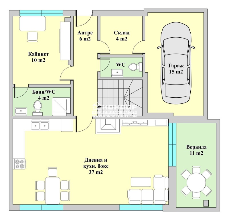 Цената включва завършване до Акт 16 - ВиК инсталация, Ел и ОВ инсталации, мазилка на стените, външна мазилка с висококачествена топлоизолация, PVC дограма цвят тъмно сив със стъклопакет 4 сезона.