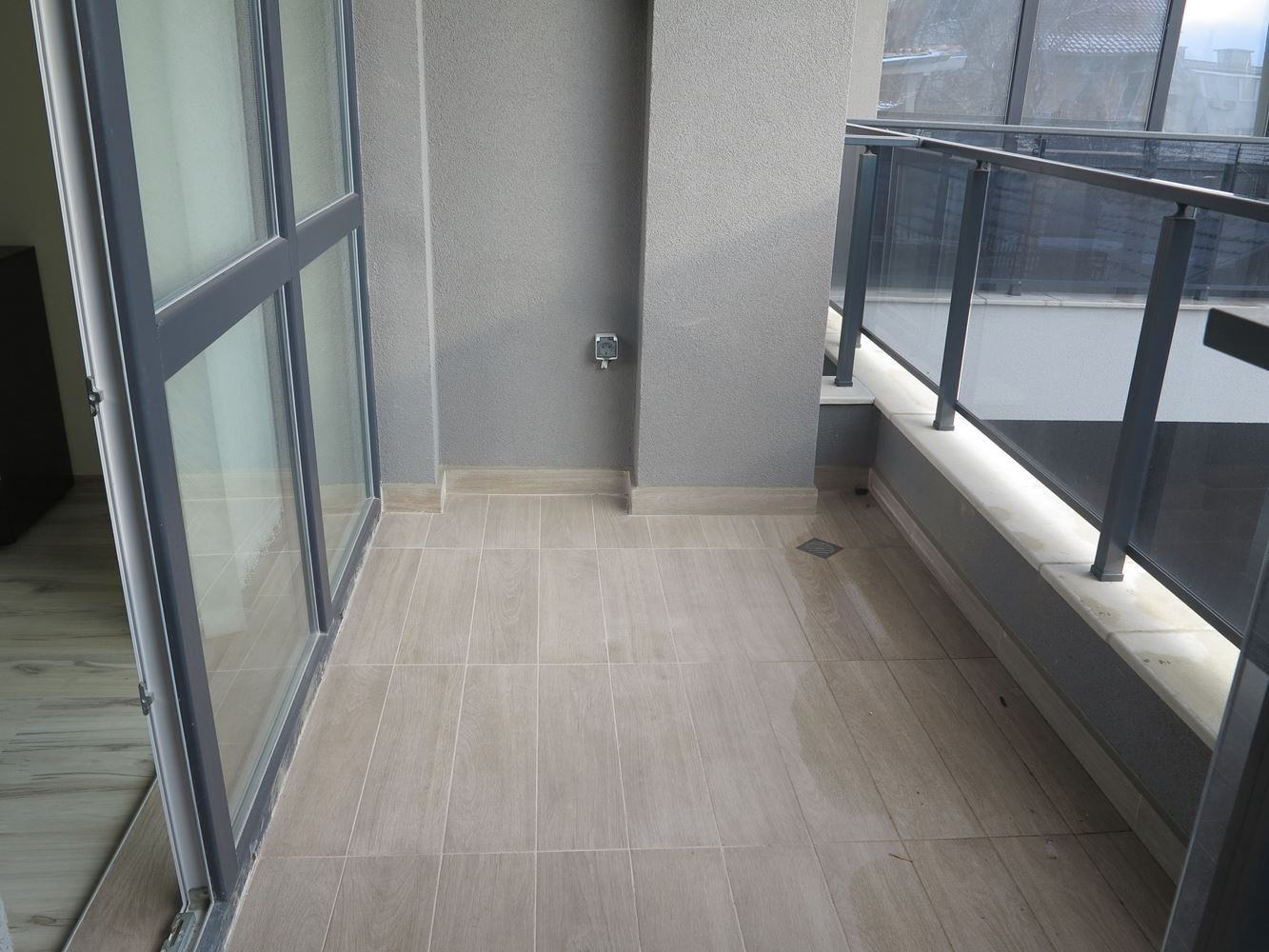 Тристайният имот е разположен на първи /висок/ етаж в новопостроена сграда с асансьор. Има възможност за наем на подземно паркомясто за 80 евро месечно.