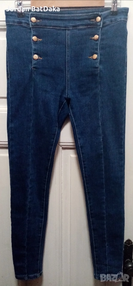 Страхотни слимфит(като клин) дънки от много приятен еластантен дънков плат. Длъжен съм да ги обявя втора употреба, но за мен тези дънки не са носени. Жалко, че не ги снимах на манекена, от който ми ги свалиха. Размери - в кръста 40см и дължина 94см. Дънката е абс ТОП, препоръчвам!