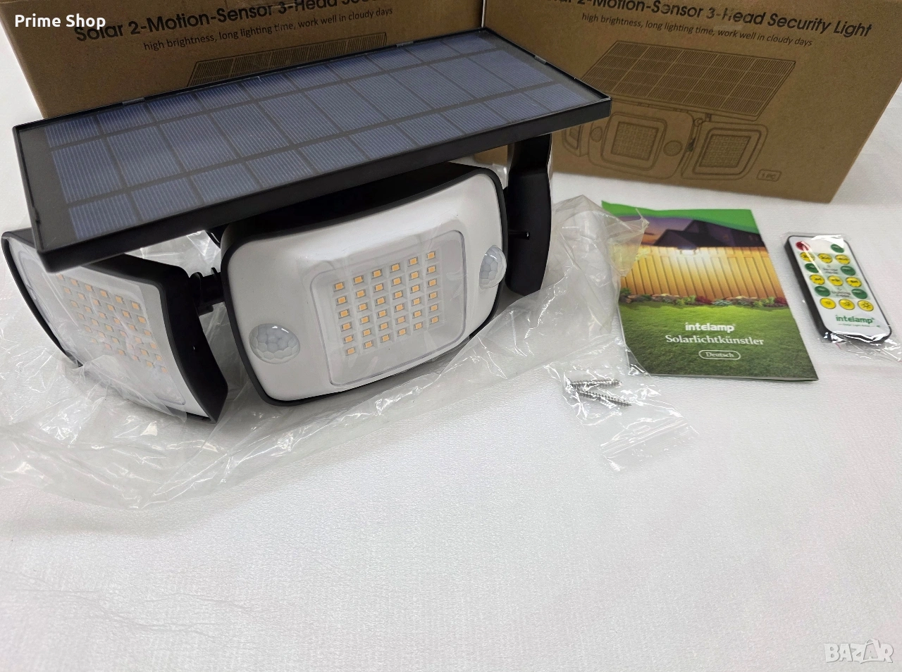 * 1 x Соларна LED лампа Intelamp с три светлинни глави