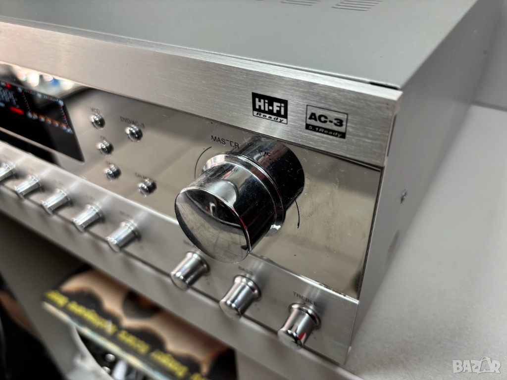• Дисплей: Дигитален дисплей, показващ текущия режим (напр. TAPE, AC-3) и графичен еквалайзер.