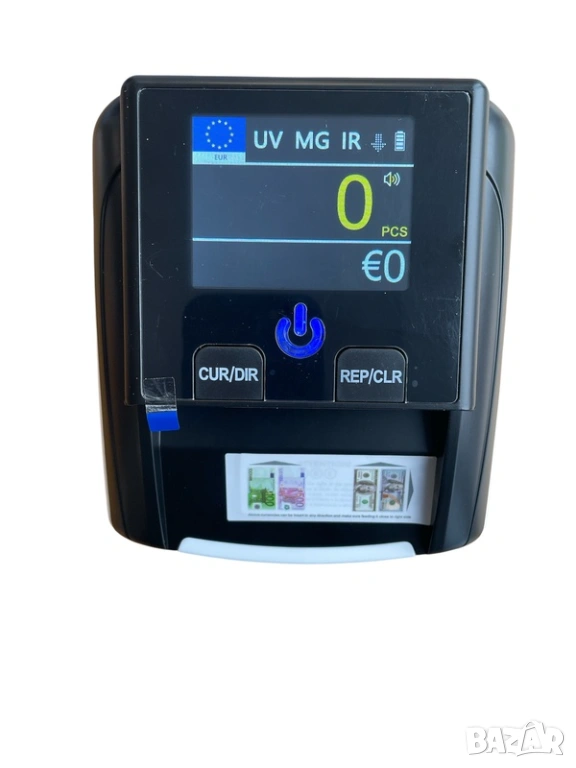 Това е компактен и надежден дигитален детектор за проверка на банкноти, създаден за бързо разпознаване на фалшиви пари в ежедневната търговска дейност. Устройството използва ултравиолетова (UV) технология, която открива защитните елементи на банкнотите и автоматично разпознава техния номинал, като го визуализира на ясен дигитален дисплей.