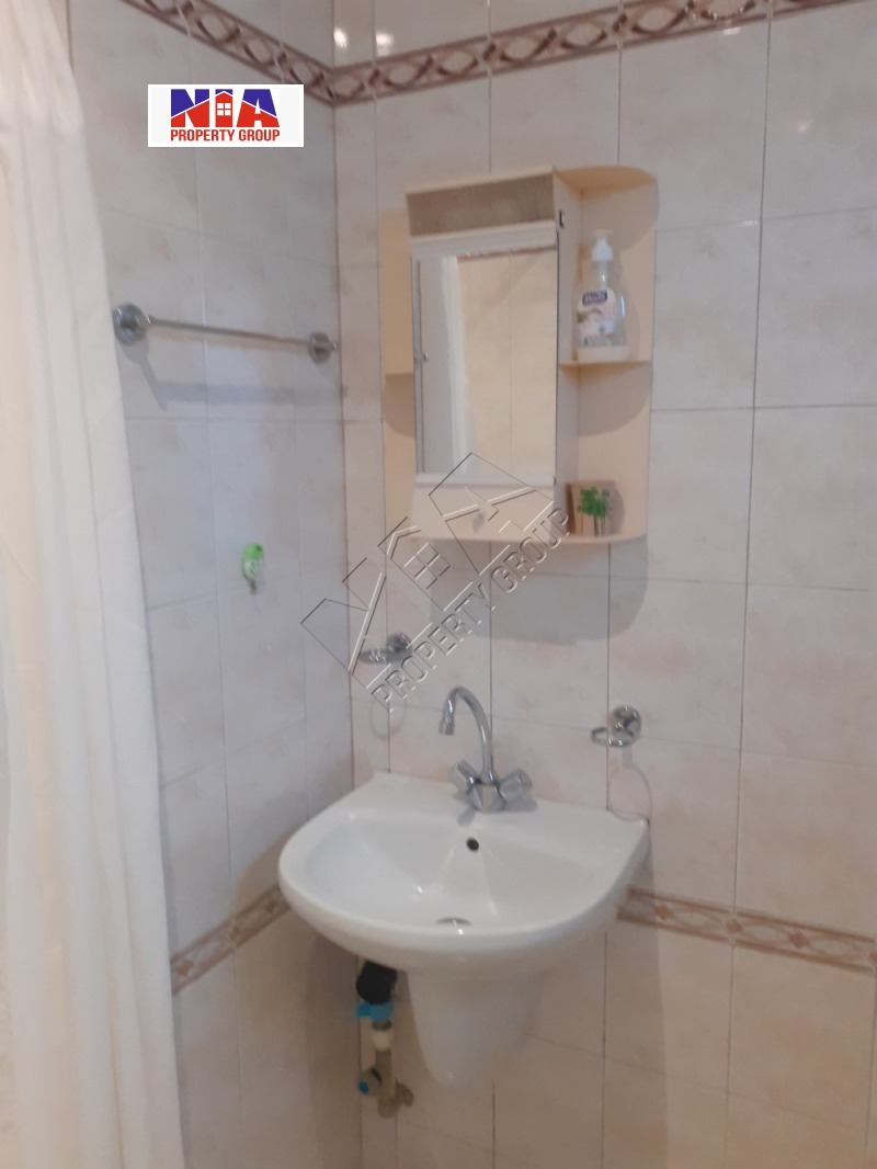 Апартаментът е старателно почистен, пребоядисан и освежен. Мебелите са частично подновени, техниката работеща. Спалнята и кухнята са климатизирани, дневната се отоплява с конвекторен радиатор. Диваните и в двете стаи са разтегателни. Банята е голяма и светла, с предверие (мокро помещение ) и отваряем прозорец. В наемната цена е включено сухо складово помещение в сутерена с площ 4м2 и паркомясто в двора на сградата с контрол на достъпа.