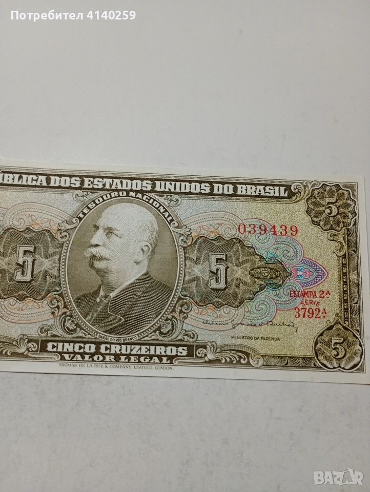 БРАЗИЛИЯ БАНКНОТА 5 КРУЗЕЙРО 1962-1964 Г → Обява 53505749